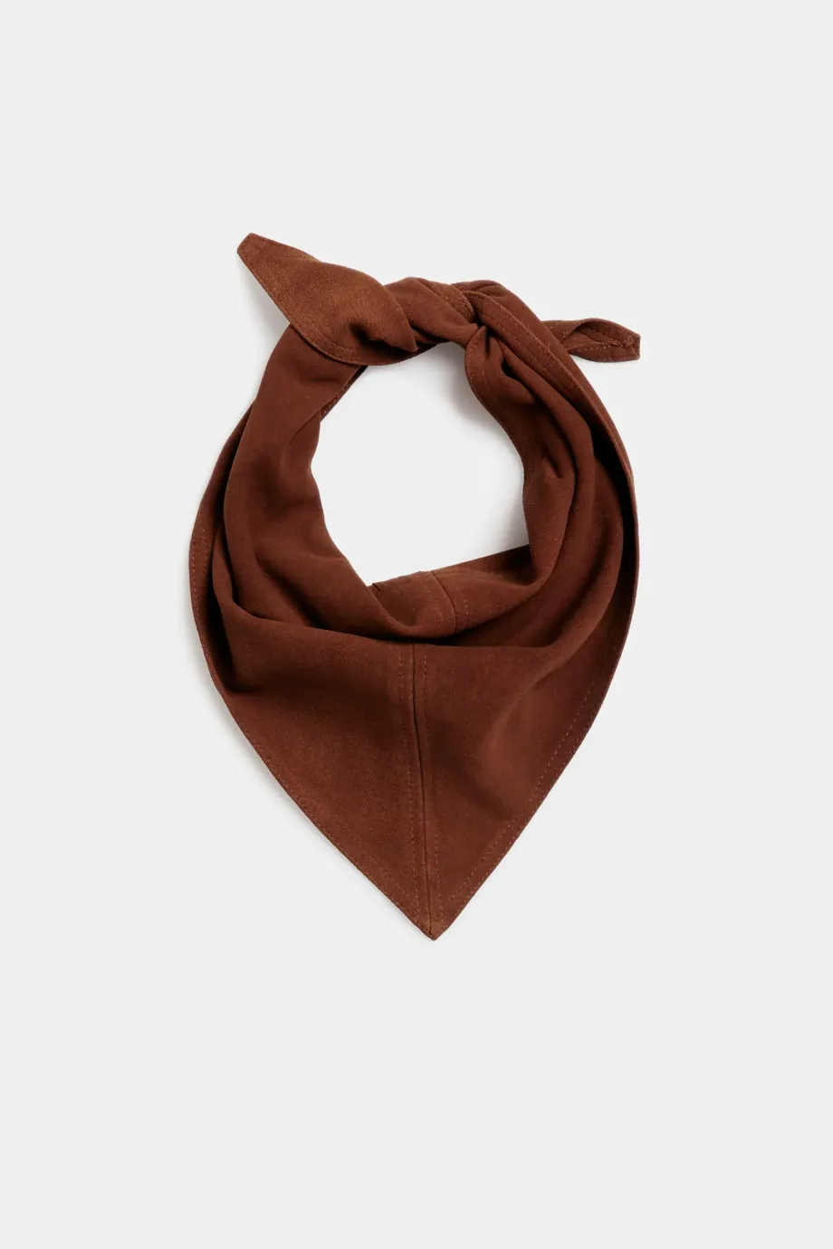 Šátek z přírodní semišové kůže v hnědé barvě. Měkký a jemný na dotek.