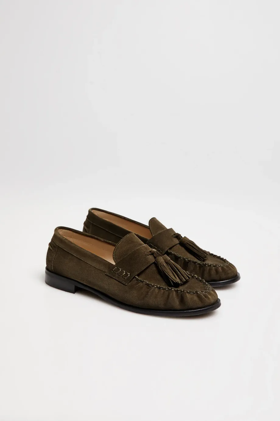 Semišové mokasíny s třásněmi. Vyrobené z vysoce kvalitní přírodní telecí a hovězí kůže. Hnědá barva. Ručně šité ve španělské manufaktuře.