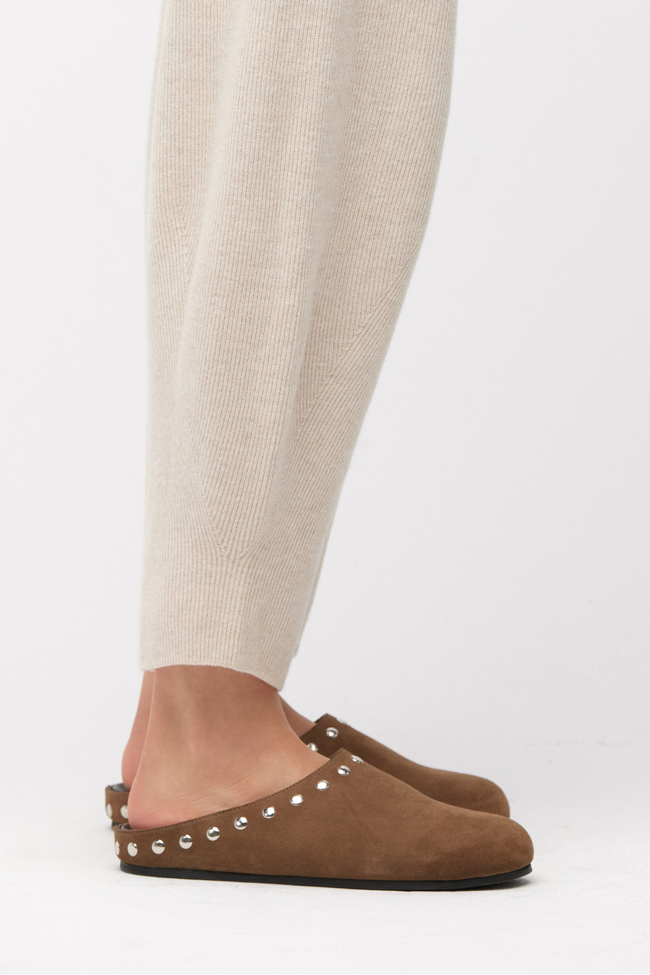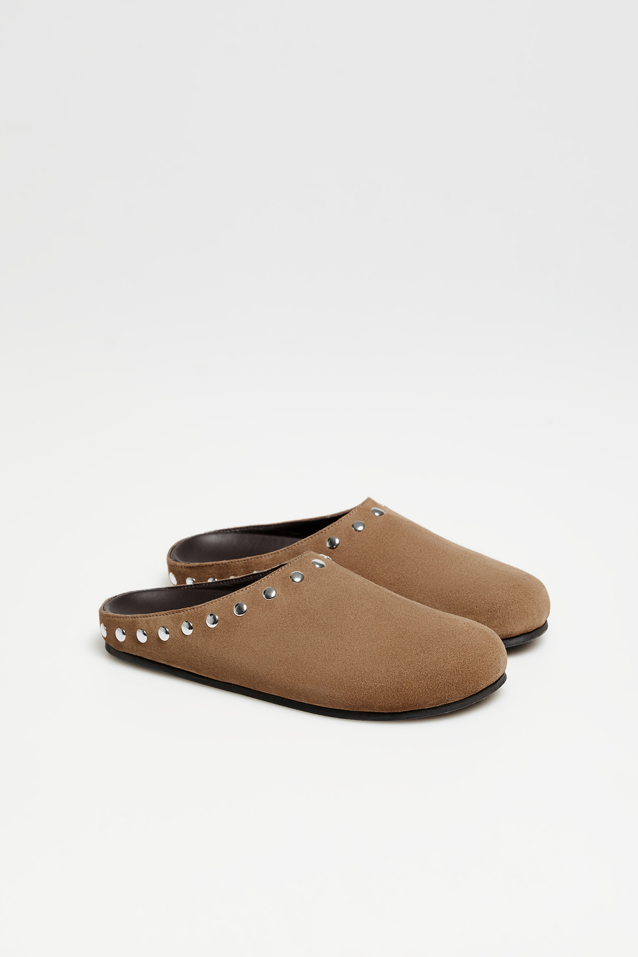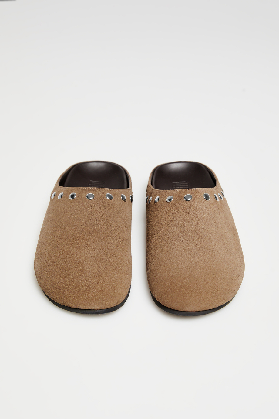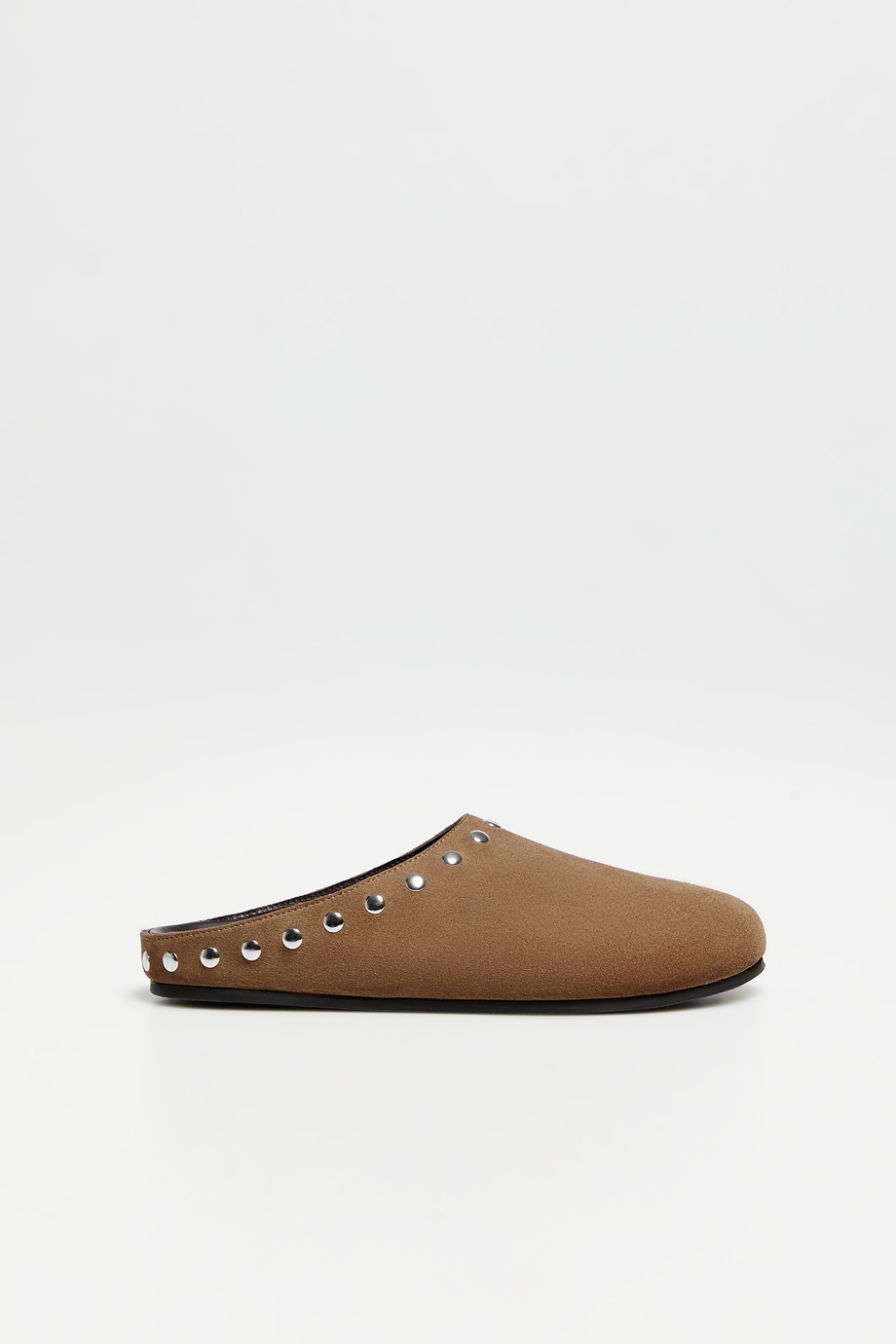 Hnědé semišové pantofle s cvoky