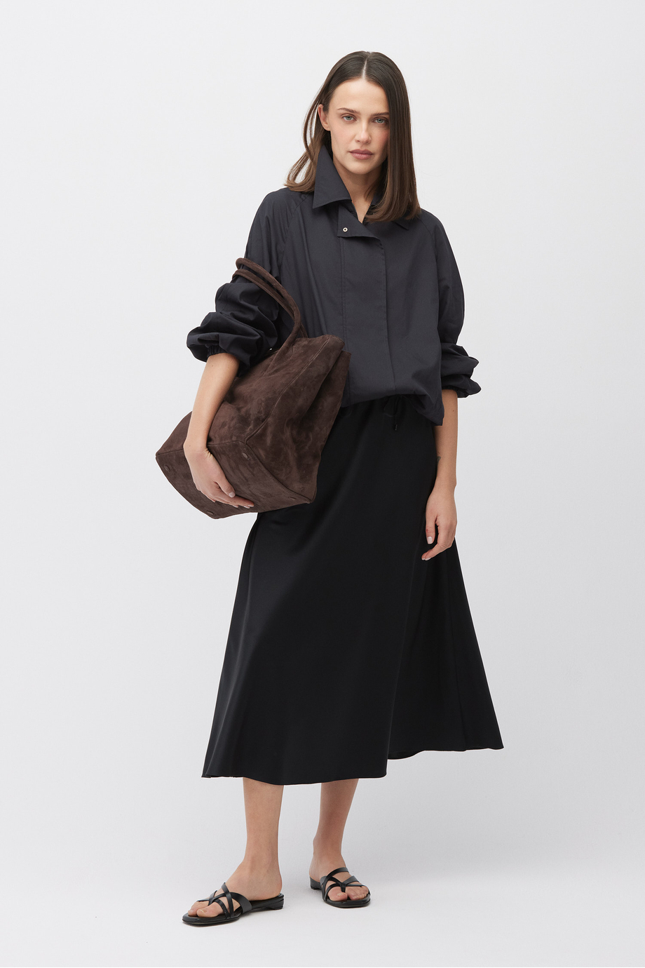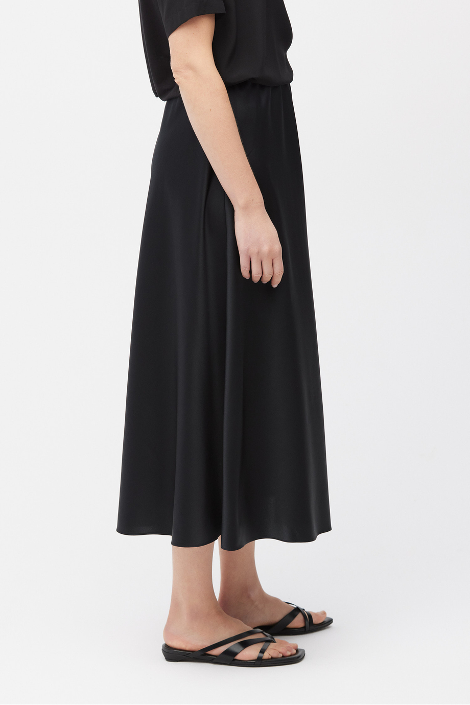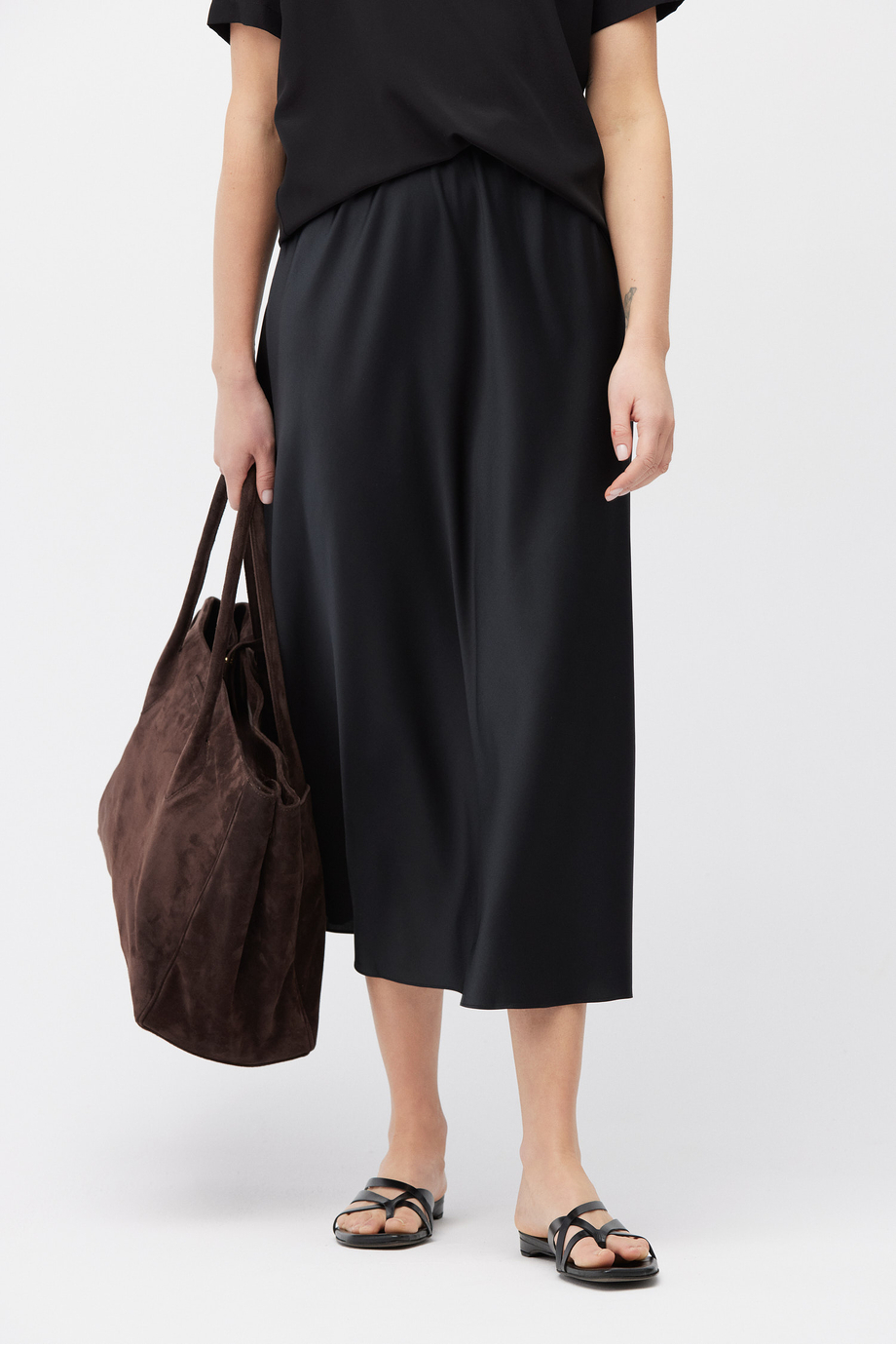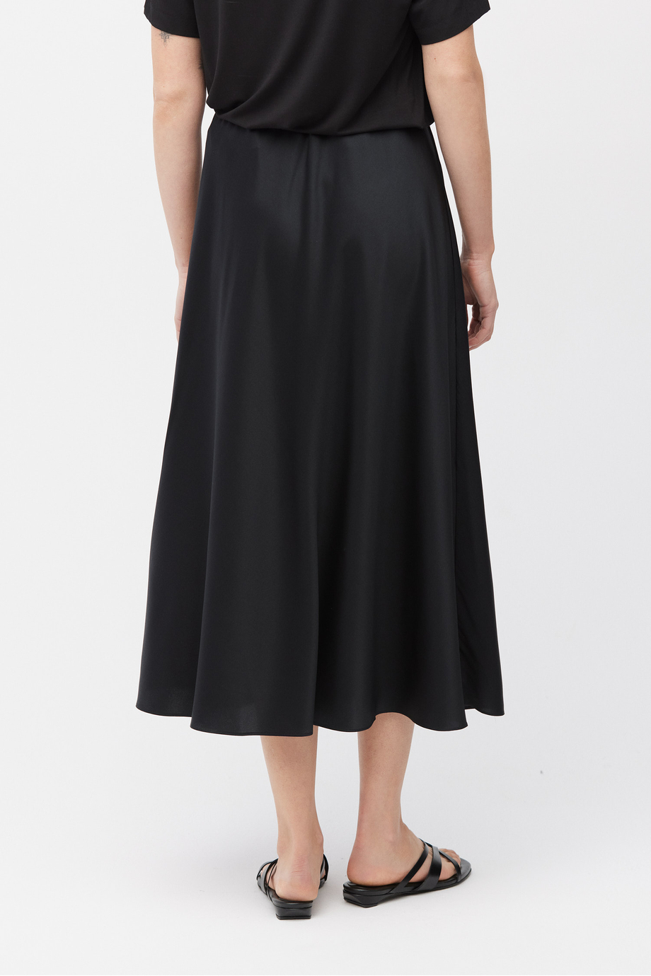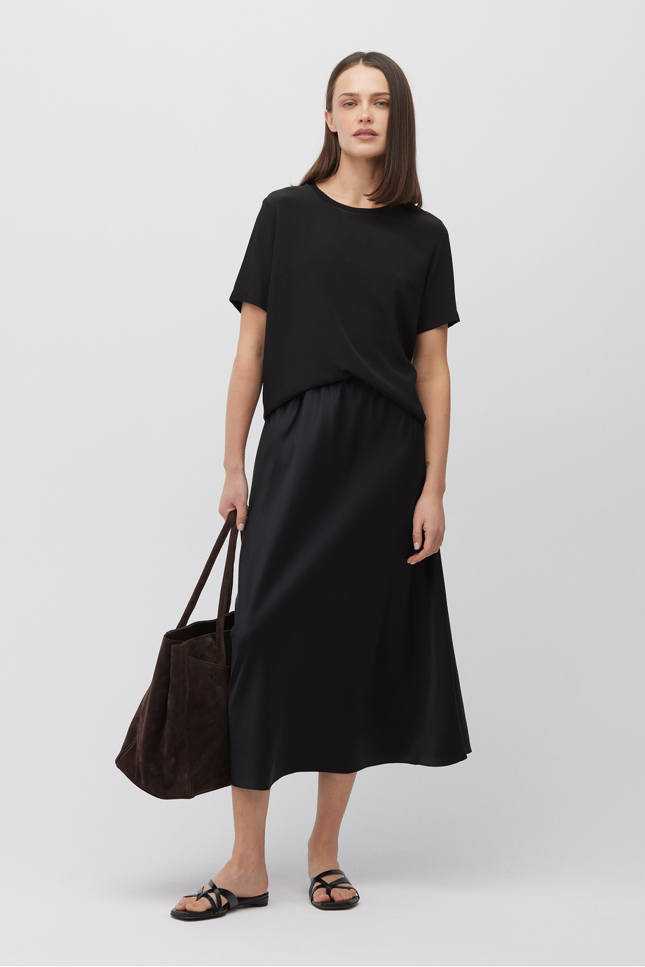 Černá sukně z hedvábí. Elastický pas. Midi délka.