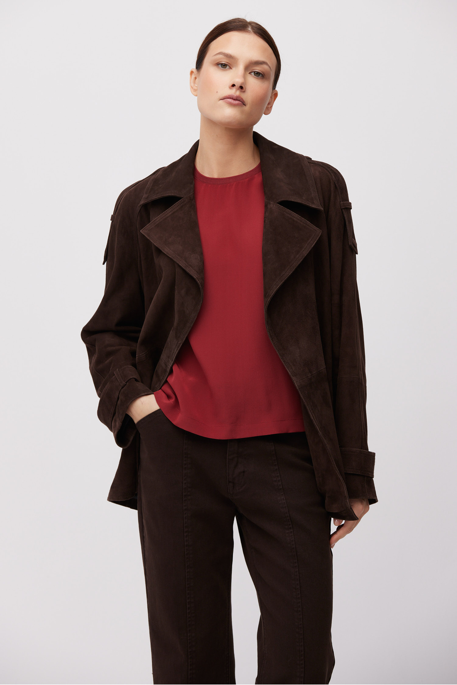 Modelka na fotografii měří 178 cm a má na sobě velikost 36.