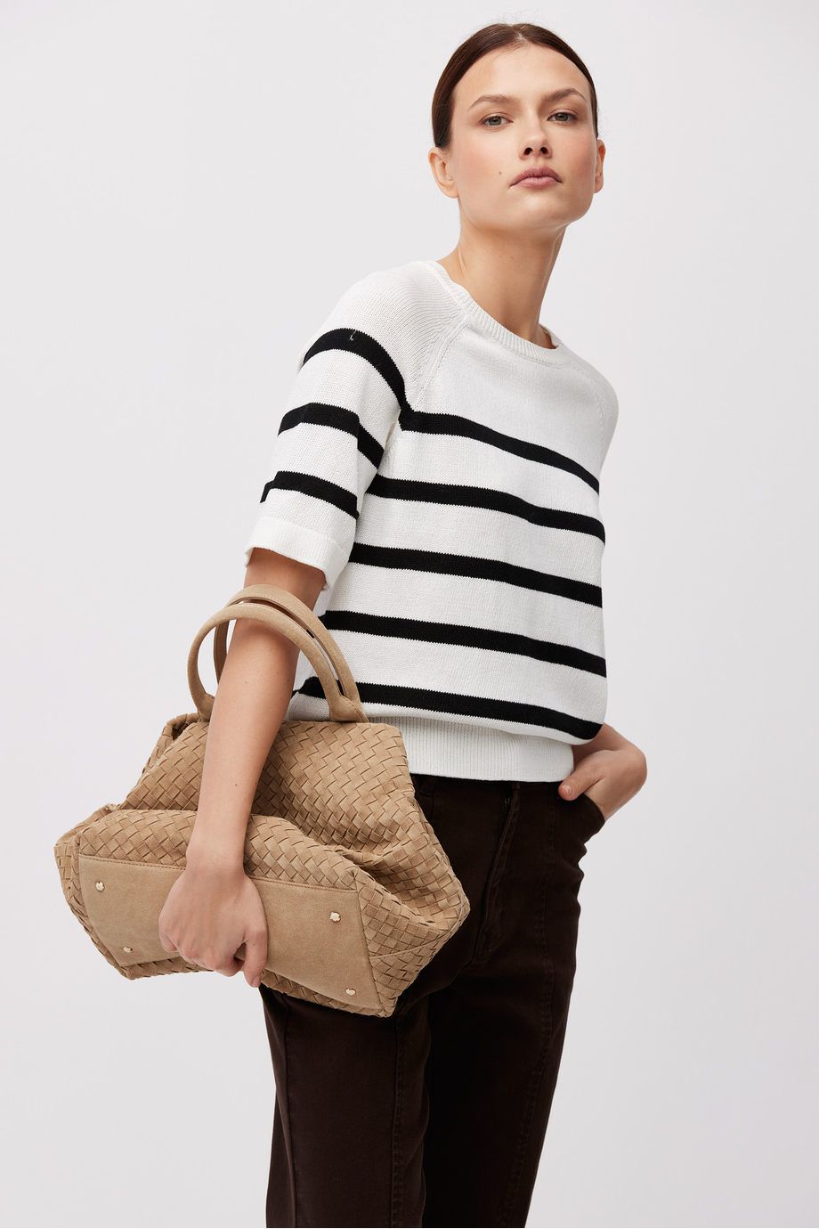 Pruhovaný svetr s krátkým rukávem