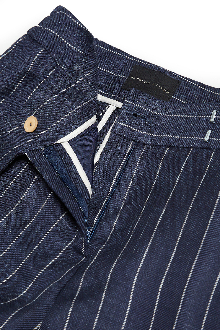 Kalhoty s proužkem tennis. Mírně zúžená nohavice. Kapsy. Zapínání na zip, háček a knoflík corozo zevnitř. Vnitřek s ozdobným lemováním. Kapsy. Barva: tmavě modrá. K doplnění kompletu sako ze stejné tkaniny.