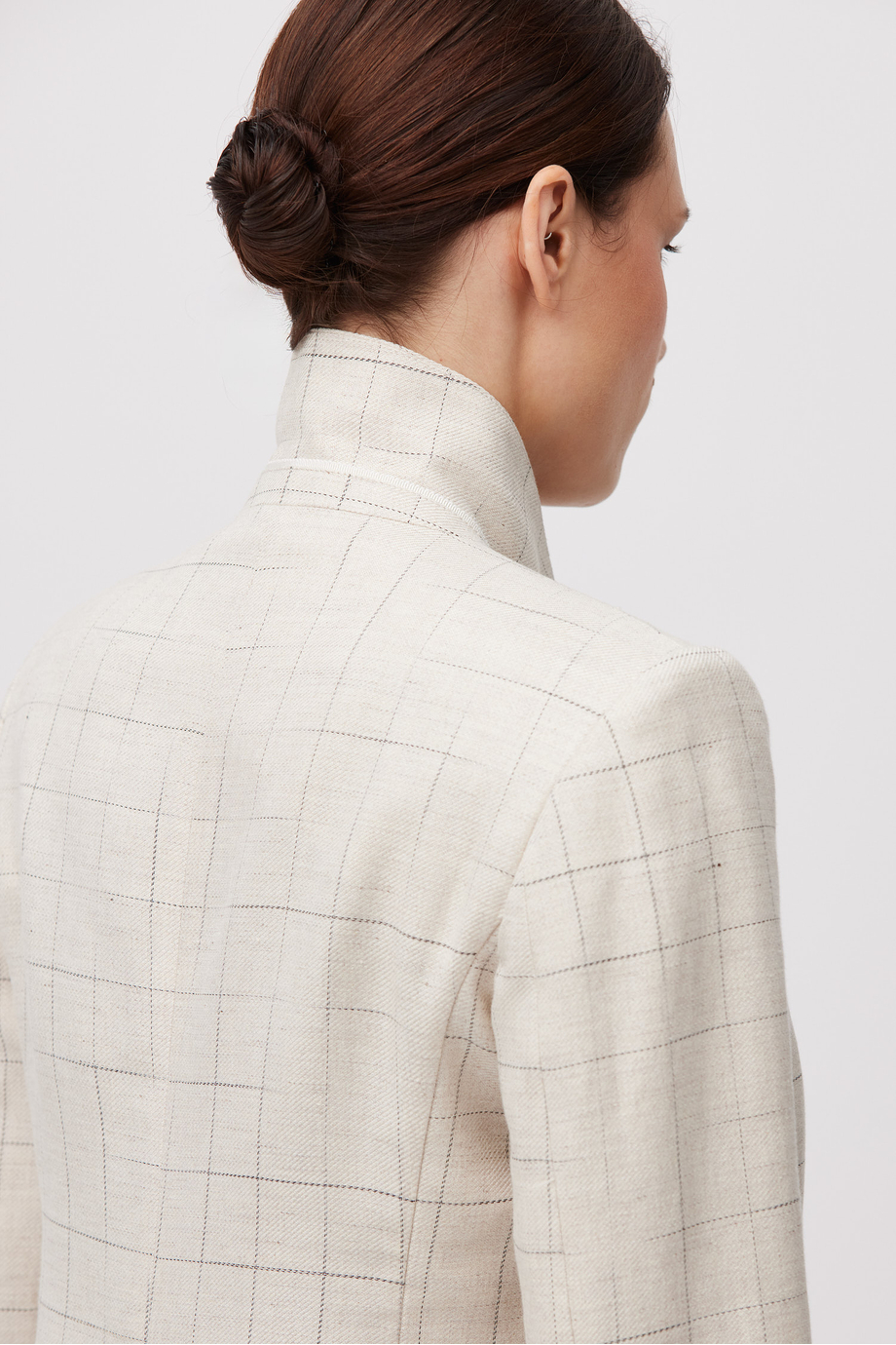 Béžové kostkované sako s příměsí lnu