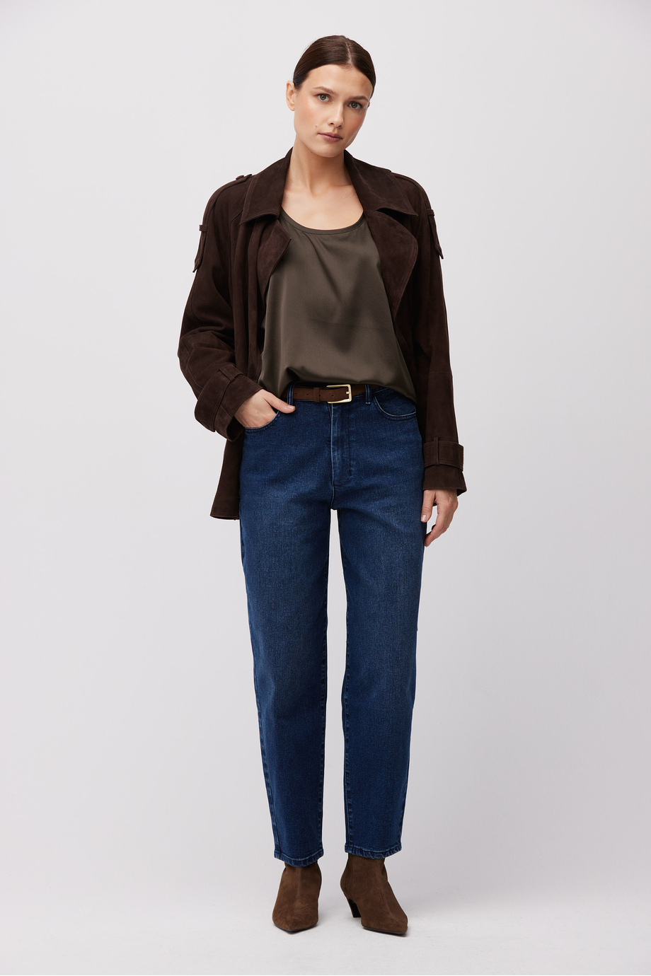 Modelka na fotografii měří 178 cm a má na sobě velikost 36.