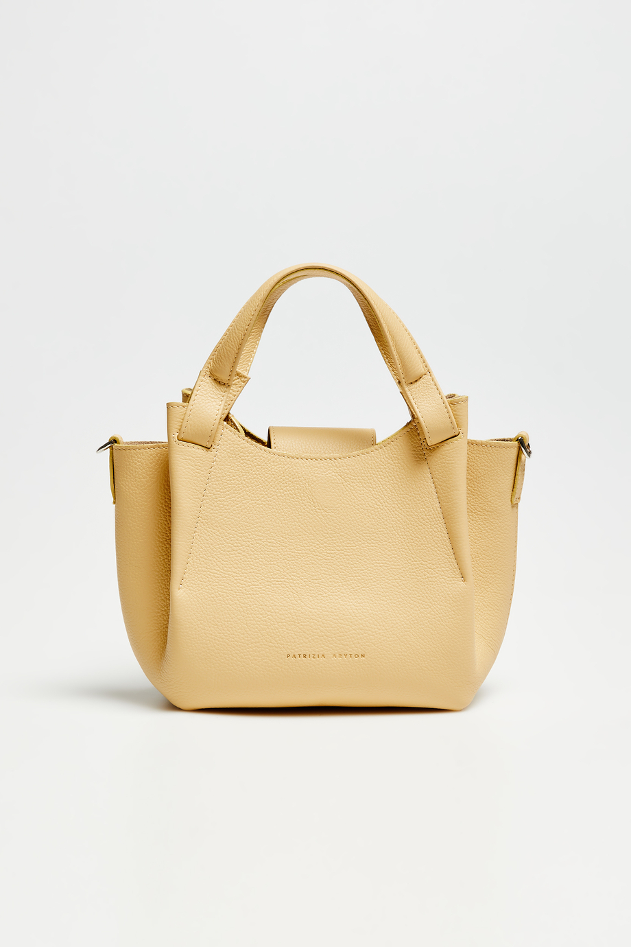 Kabelka z přírodní zrnité kůže střední velikosti. Zapínání na magnet, pohodlná ucha a odnímatelný dlouhý popruh. Uvnitř malá kapsička a podšívka z přírodní semišové kůže. Model ručně šitý v polské manufaktuře. Barva: žlutá.