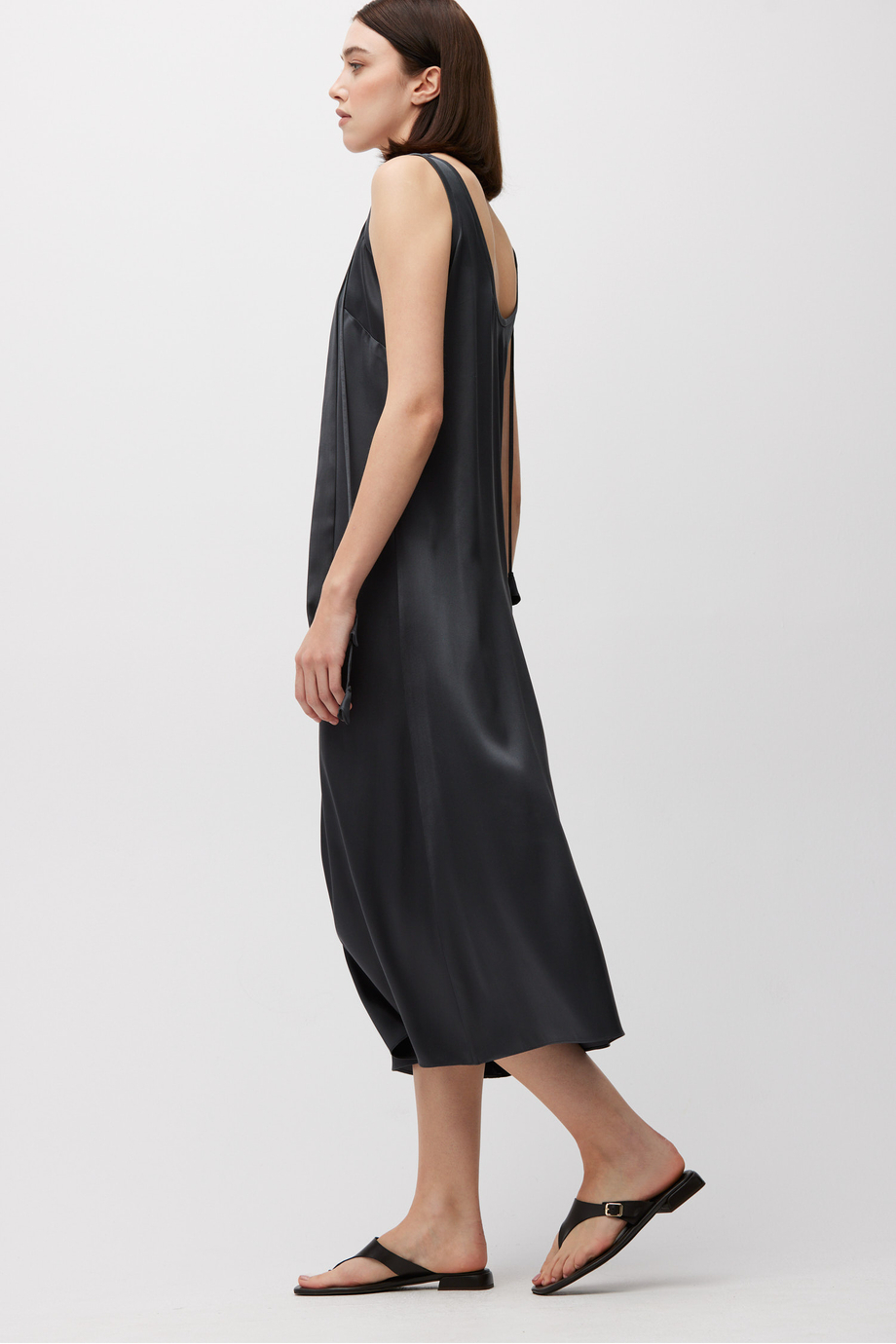 Šedé hedvábné midi šaty s třásněmi